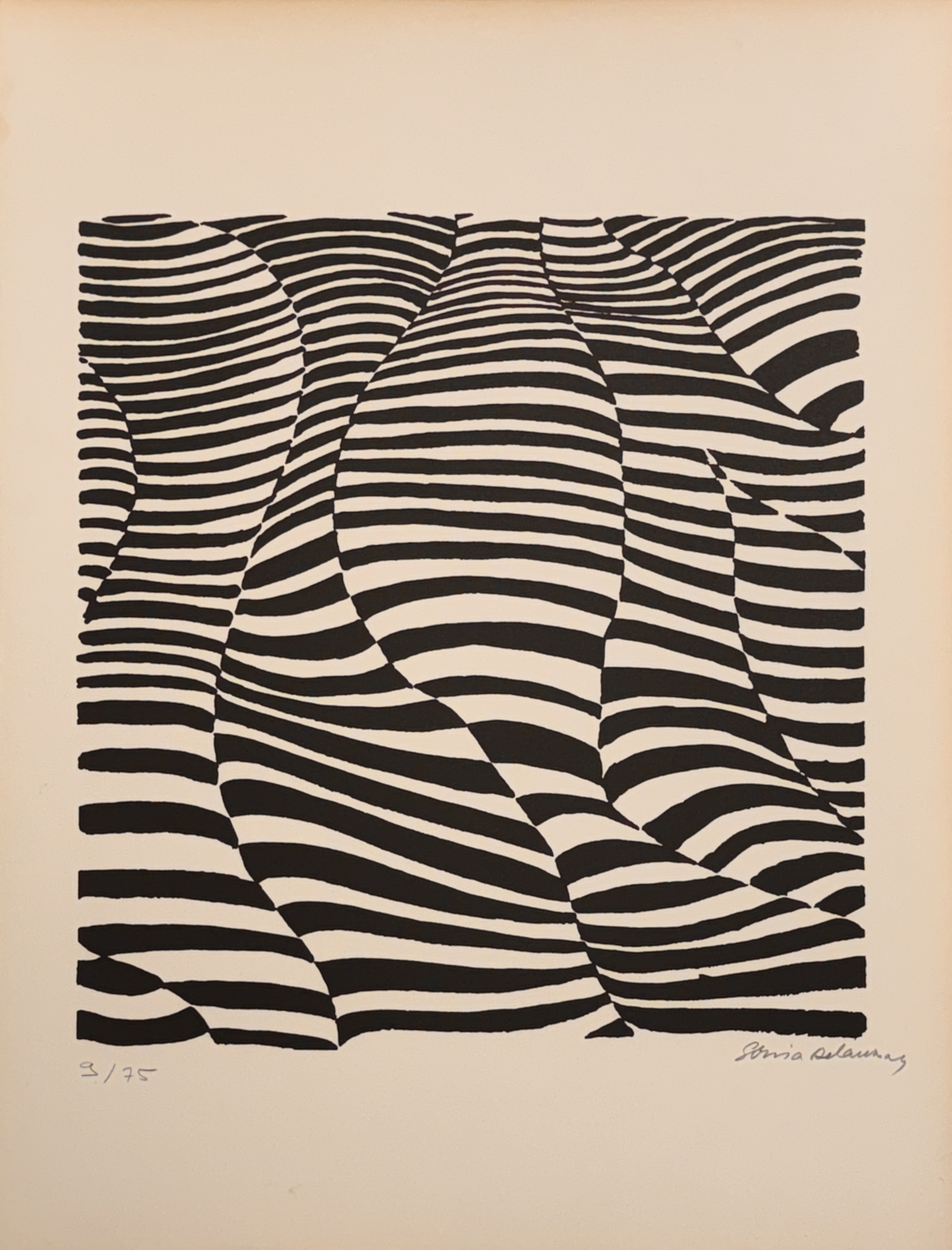 Lithograph on wove paper with wide margins, signed and numbered 9/75, slight yellowing of the outer edges.